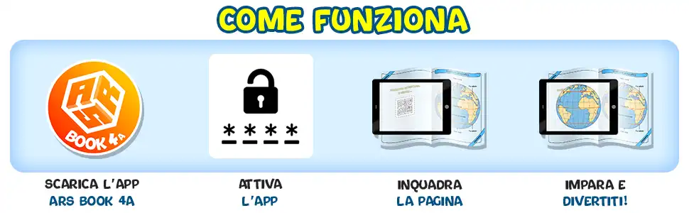 ARS Book 4ª è un libro didattico interattivo progettato per studenti della quarta classe della scuola primaria (età 8–12 anni). Attraverso l'applicazione in Realtà Aumentata, i contenuti del libro prendono vita, offrendo un'esperienza di apprendimento immersiva e stimolante.