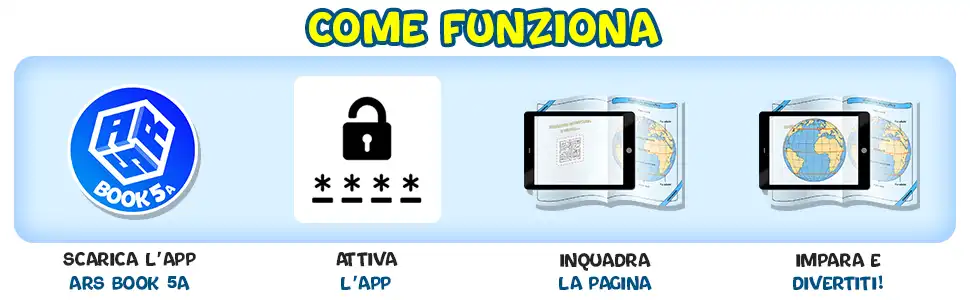 ARS Book 5ª è un libro didattico interattivo progettato per studenti della quinta classe della scuola primaria (età 9–13 anni). Attraverso l'applicazione in Realtà Aumentata, i contenuti del libro prendono vita, offrendo un'esperienza di apprendimento immersiva e stimolante.