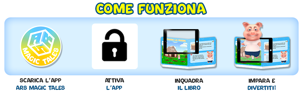 Grazie all’app ARS Magic Tales, la storia non si limita a essere letta: si ascolta, si vive. Inquadrando le pagine, i personaggi prendono vita con animazioni digitali e audio bilingue (italiano e inglese).