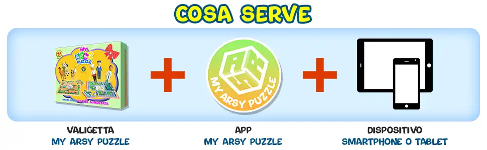 My Arsy Puzzle è un innovativo kit educativo pensato per bambini dai 3 anni in su. Contiene due puzzle illustrati: "Gli Animali della Fattoria" e "I Mestieri in Città".
