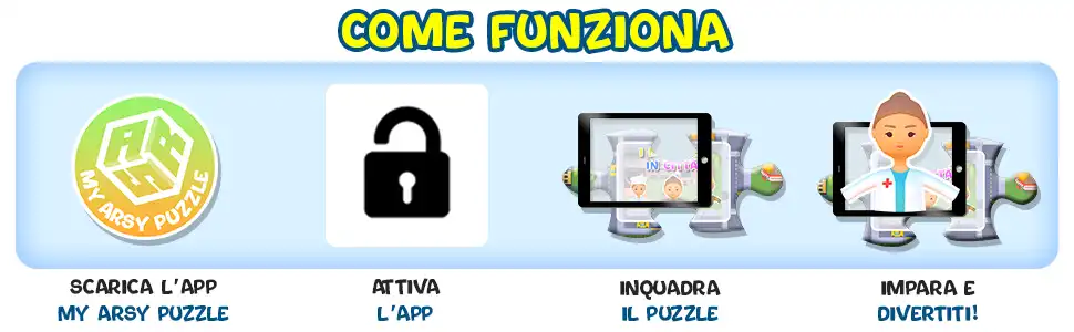 Una volta completati, i puzzle prendono vita grazie all'app gratuita in realtà aumentata, offrendo animazioni 3D e contenuti interattivi in italiano e inglese.